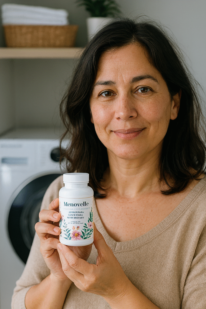 Menovelle is a natural daily supplement created to support women during menopause — not with hormones or synthetic drugs, but with a plant-based formula designed to bring relief where it’s needed most.